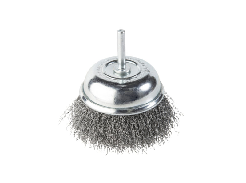 6mm round spindle to suit Die Grinder or Drill. Cup design allows for brushing of flat, curved and uneven surfaces Crimped Wire for less aggressive cleaning.
